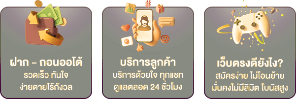 ตอบ : - มีโบนัสต้อนรับสมาชิกใหม่ 100% โปรโมชั่นคืนยอดเสีย 10% ทุกสัปดาห์ และกิจกรรมแจกเครดิตฟรีประจำเดือน
